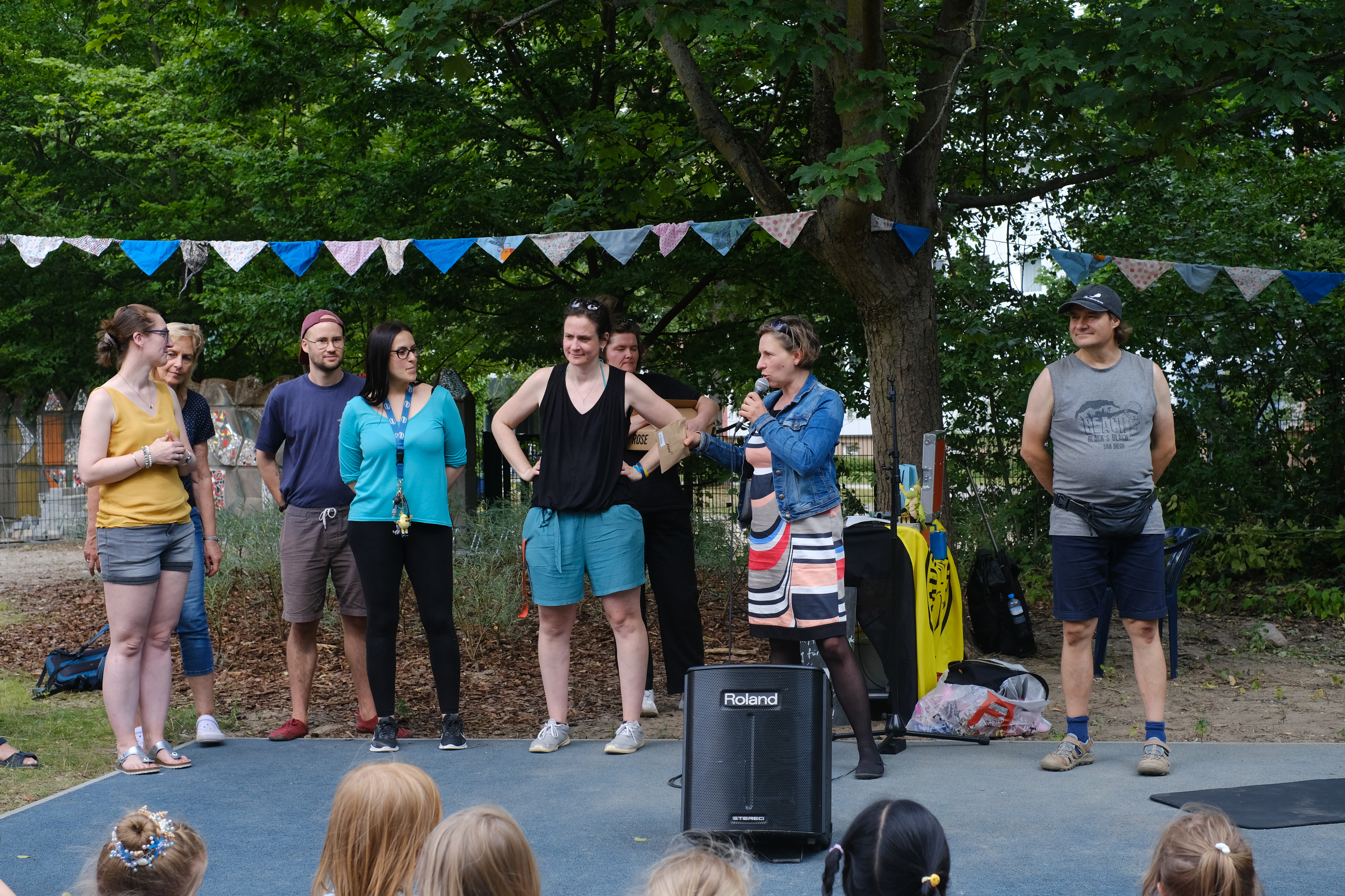 Auch intern haben wir uns in Unterteams zusammengefunden und einen kleinen Wettbewerb um die meisten gefahrenen Kilometer pro Unterteam ins Leben gerufen. Gewonnen hat hier das Team der Kita Sonnenschein mit über 1570 Kilometern (Auf dem Foto oben ist die Auszeichnung des Teams zu sehen). Auf den Plätzen zwei und drei folgen das Team der SIM mit 1329 km und das Team des Jugendwohnhauses Ohana mit 1279 km. Für die ersten drei Plätze gab es auch tolle Preise zu gewinnen wie nützliche Fahrrad-Multitools, einen Fahrrad-Reparaturworkshop oder reflektierende Sticker für Rahmen und Helm in Regenbogenfarben.