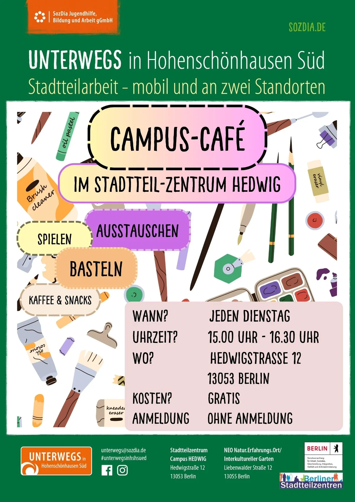 Weitere Informationen zu den einzelnen Veranstaltungen findet ihr unter dem Reiter Termine oder ihr schreibt uns eine Mail an unterwegs@sozdia.de.