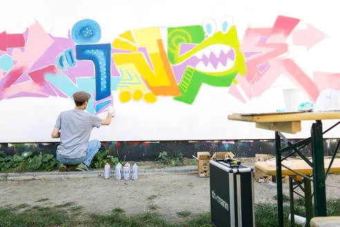 Unter Anleitung des Künstlers Kevin Grabarits lernst du, wie du eigene Skizzen und Entwürfe erstellst. Du erhälst einen Einblick in das simple, aber unerlässliche Regelwerk beim Aufbau des "Piece", wie ein Graffiti-Kunstwerk im Szenejargon genannt wird. Dann schüttelst du erst die Spraydosen und anschließend dein erstes Graffiti-Bild aus dem Ärmel.