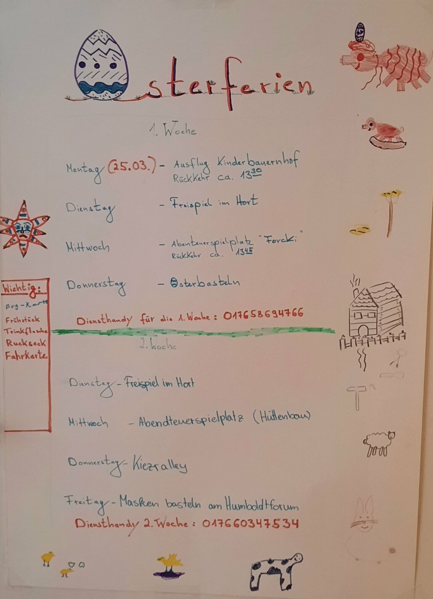 In den Osterferien erwarten euch viele tolle Angebote wie ein Besuch des Kinderbauernhofs oder eine Kiezrally.